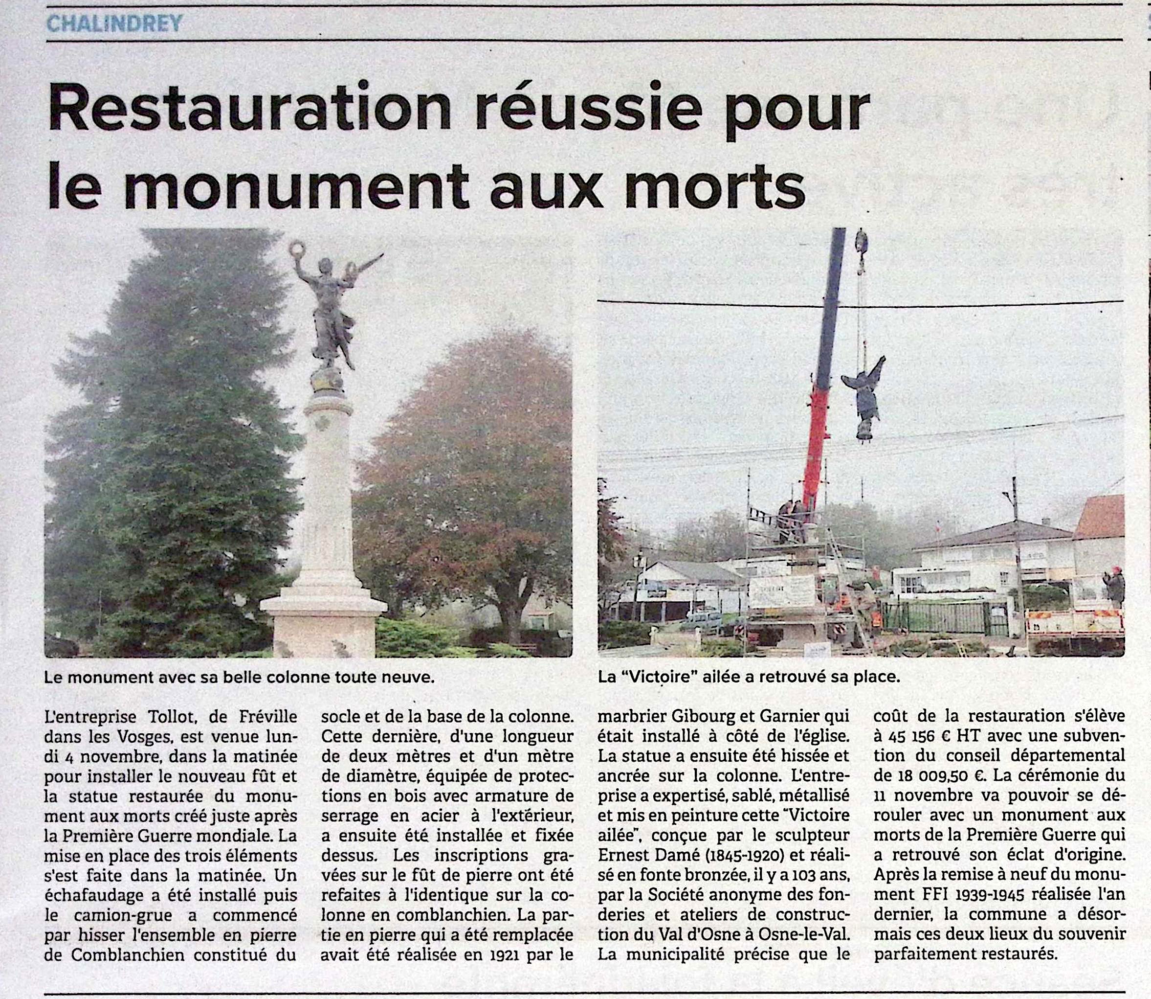 Chalindrey : retour restauré du monument aux morts (JHM)