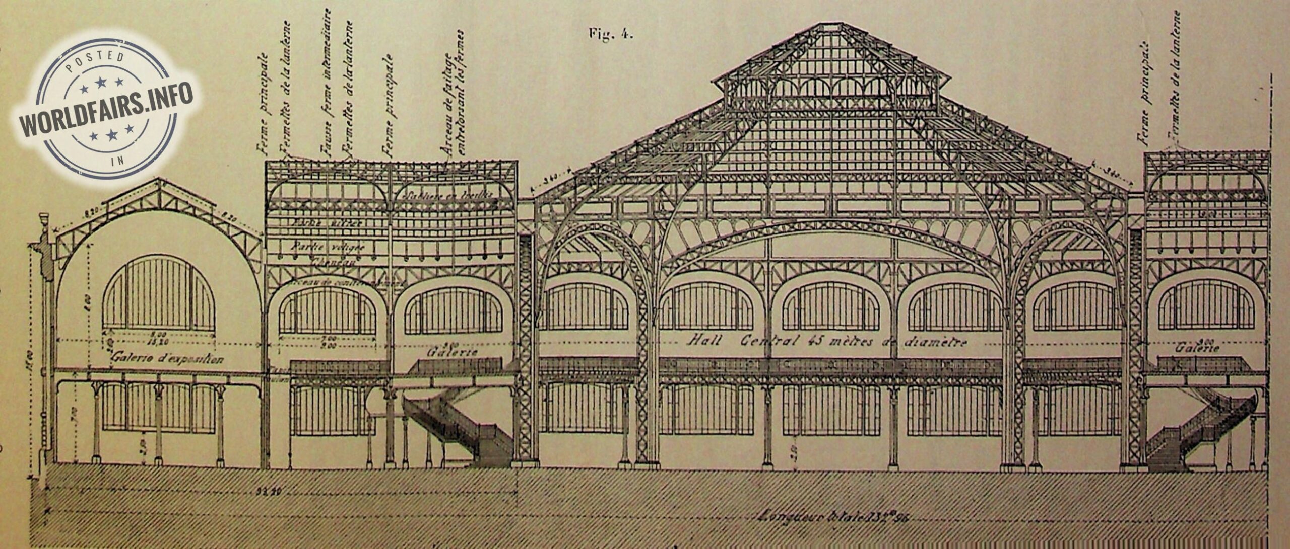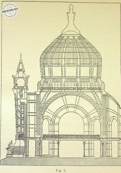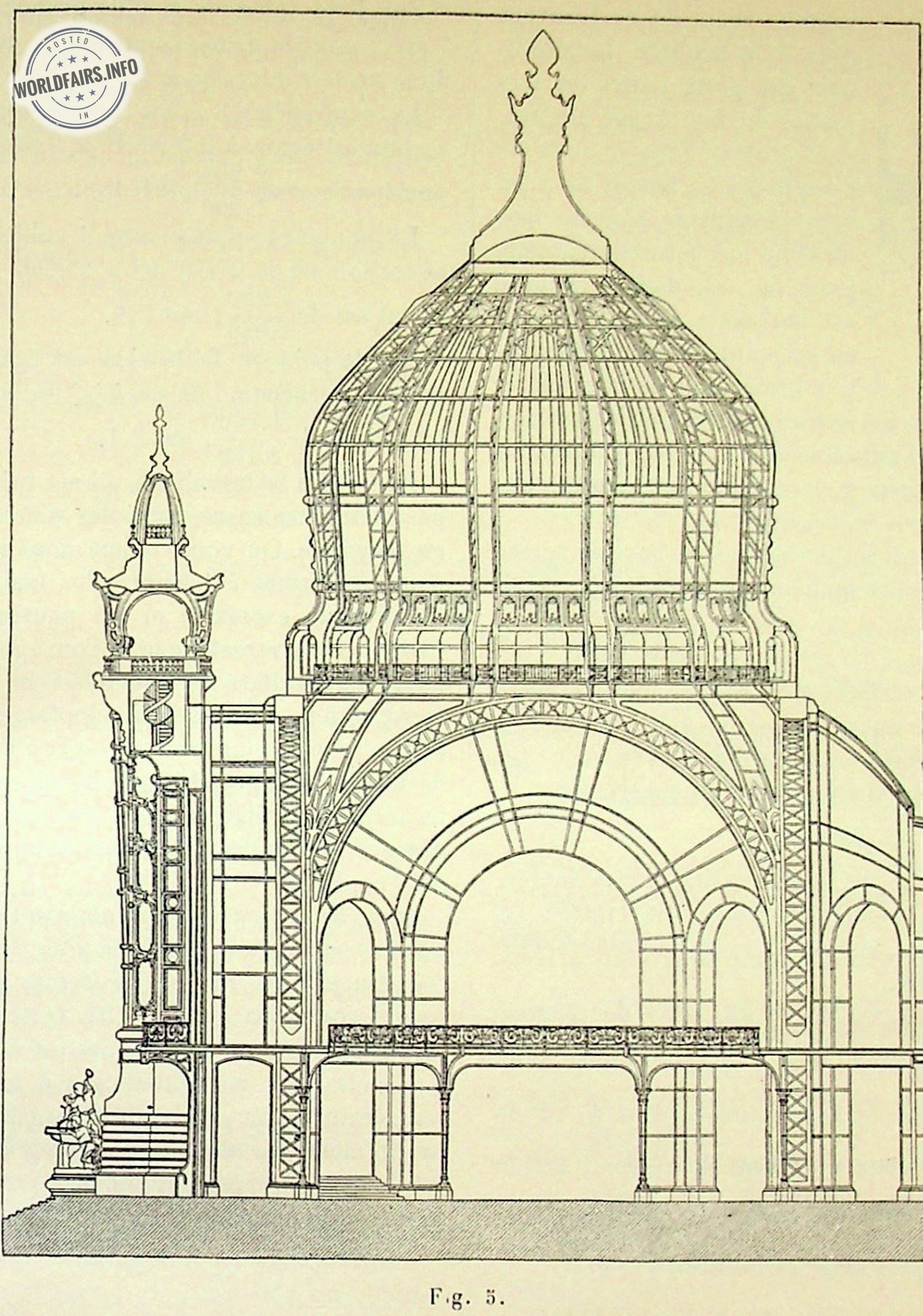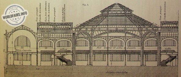 Les constructeurs de la partie métallique sont MM. Dubois et Nicolle. Ils ont très consciencieusement secondé l’architecte dans sa recherche de la partie décorative des fermes, qu’il était indispensable de laisser visibles dans ce Palais destiné à abriter les produits les plus remarquables des Mines et de Métallurgie.