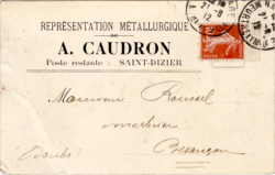 Qui connaît  A.Caudron, représentant  en métallurgie avec une adresse postale à Saint-Dizier en 1912 ? Est-ce un habitant de la ville ou quelqu’un qui profite de la renommée métallurgique de la cité ?
