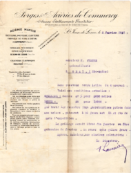 Enfin, dans le courrier de 1926 des Forges et Ateliers de Commercy (FAC) qui revendique la filiation avec Grosdidier; c’est la colonne de gauche qui doit attirer l’attention : on y voit des adresses d’entreprises liées dans ce groupe : à Saint-Jean-de-Losne (Côte d’Or) pour du grillage et des ronces artificielles, ) Rouvroy en Haute-Marne pour la chaînerie électrique, l’usine de Commercy restant dans son domaine initial, la pointerie.